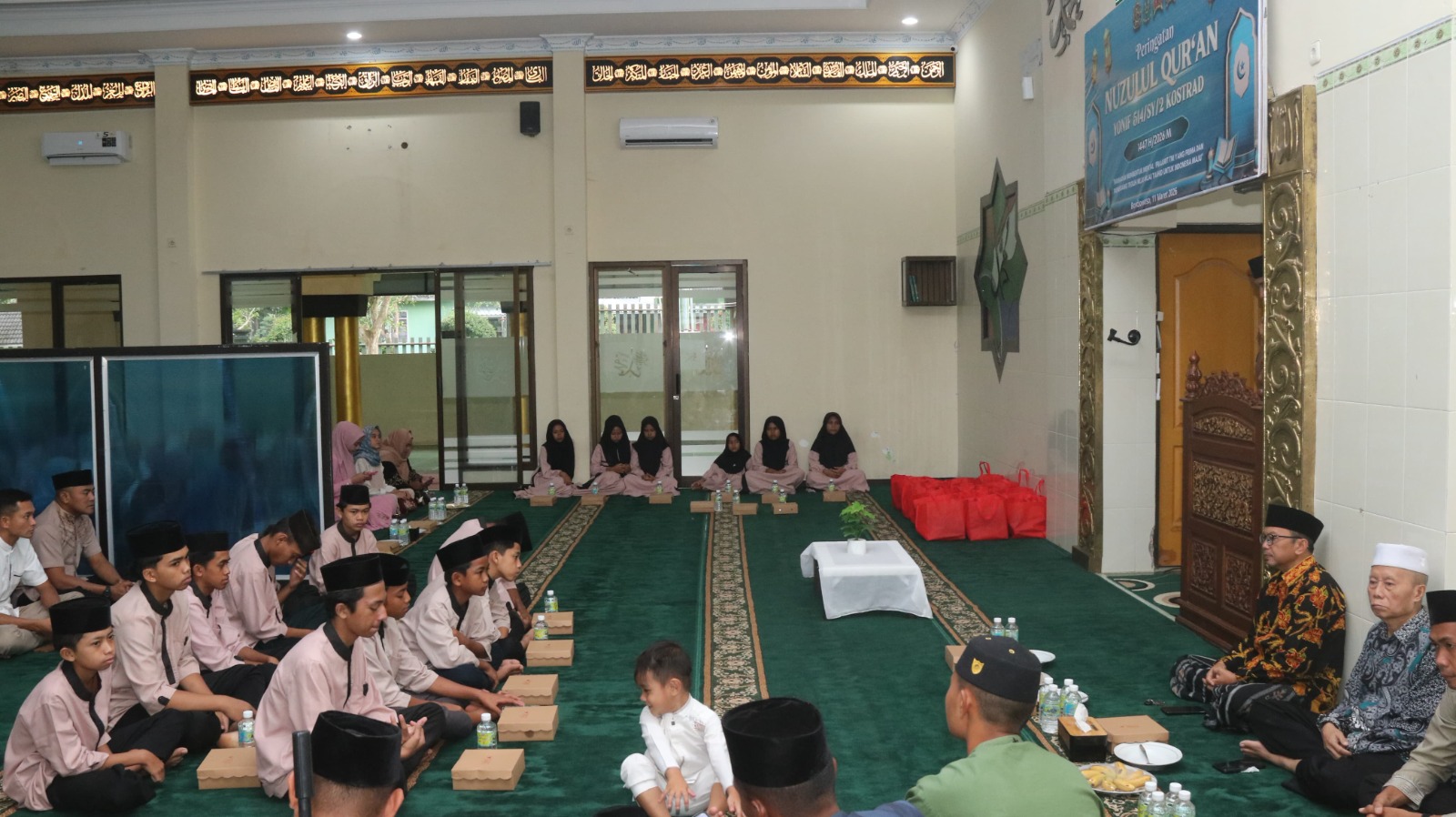 Spread the loveYonif 514 Kostrad Gelar Peringatan Nuzulul Qur’an, Perkuat Iman dan Kebersamaan Prajurit Bondowoso – Prajurit Batalyon Infanteri 514 Kostrad menggelar peringatan Nuzulul Qur’an 1447 Hijriah di Masjid Nurul Yaqin, markas Yonif 514 Kostrad, Kecamatan Curahdami, Kabupaten Bondowoso, Senin (16/3). Kegiatan ini diisi dengan pengajian, santunan anak yatim, serta buka puasa bersama yang diikuti oleh prajurit muslim beserta keluarga. Rangkaian acara dimulai dengan pembacaan ayat suci Al-Qur’an yang kemudian dilanjutkan dengan lantunan sholawat Nabi sebagai bentuk penghormatan dan kecintaan kepada Nabi Muhammad SAW. Komandan Batalyon Infanteri 514 Kostrad, Letkol Inf Ugroseno, dalam sambutannya menyampaikan bahwa peringatan Nuzulul Qur’an merupakan kesempatan bagi para prajurit untuk kembali merenungkan nilai-nilai yang terkandung dalam Al-Qur’an. Ia menekankan pentingnya menjadikan Al-Qur’an sebagai pedoman dalam kehidupan sehari-hari, baik dalam kehidupan pribadi maupun dalam menjalankan tugas sebagai prajurit TNI. Menurutnya, prajurit yang memiliki landasan iman dan akhlak yang kuat akan mampu menjalankan tugas dengan penuh tanggung jawab, disiplin, serta menjunjung tinggi nilai-nilai moral. Kegiatan tersebut juga diisi dengan ceramah agama yang disampaikan oleh Ustadz Abdul Wahid yang mengajak para prajurit untuk semakin meningkatkan ketakwaan serta menjadikan Al-Qur’an sebagai sumber petunjuk dalam menghadapi berbagai tantangan kehidupan. Acara kemudian ditutup dengan buka puasa bersama yang berlangsung dalam suasana hangat dan penuh kekeluargaan, sekaligus mempererat hubungan silaturahmi di lingkungan keluarga besar Yonif 514 Kostrad. Romo Kefas Post Views: 40 Navigasi pos Mengabadikan Nama dr. Karneni: Penghormatan bagi Pionir Kesehatan Tulungagung Perkuat Pengamanan Idul Fitri di Perbatasan, Satgas Yonarhanud 2 Kostrad Ikut Apel Operasi Ketupat