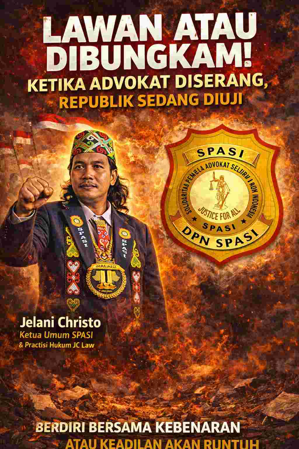 Spread the loveJAKARTA — Ini bukan sekadar berita. Ini peringatan keras bagi seluruh bangsa. Ketika advokat dan aktivis diserang, maka yang sedang diuji bukan hanya individu— melainkan keberanian negara dalam menjaga keadilan. Sejarah telah membuktikan, kebenaran tidak pernah lahir dari rasa aman. Ia lahir dari keberanian untuk bersuara, bahkan ketika risiko menjadi nyata. Ketua Umum SPASI sekaligus praktisi hukum dari JC Law, Jelani Christo, menegaskan: “Beberapa tokoh perjuangan keadilan yang menyuarakan suara kebenaran adalah Martin Luther King Jr., Nelson Mandela, Yap Thiam Hien,Mahatma Gandhi, Adnan Buyung Nasution dan masih banyak lagi pejuang hak asasi kemanusiaan.” Mereka tidak tunduk pada tekanan. Mereka tidak diam dalam ketakutan. Mereka berdiri—dan mengubah sejarah. Hari ini, semangat itu kembali diuji di Indonesia. Kasus penyiraman air keras terhadap Andrie Yunus menjadi alarm keras bagi negara hukum. Ia adalah Wakil Koordinator KontraS sekaligus advokat yang terus memperjuangkan keadilan. Jelani Christo, yang juga dikenal sebagai advokat dan penggerak advokasi publik, menambahkan: “Salah satunya adalah saat ini yang menjadi korban penyiraman air keras, aktivis Andrie Yunus… seorang aktivis adalah militan dan peduli dengan orang-orang tertindas agar para pencari keadilan mendapatkan keadilan.” Serangan ini bukan sekadar tindak kekerasan. Ini adalah ancaman terhadap keberanian itu sendiri. Ancaman terhadap mereka yang memilih berdiri. Ancaman terhadap mereka yang menolak diam. Dalam situasi ini, SPASI — Solidaritas Pembela Advokat Seluruh Indonesia — tidak boleh menjadi penonton. SPASI harus berdiri di garis depan. Jelani Christo menegaskan dengan tegas: “SPASI hadir dan dibentuk harus mampu menjadi pejuang hak asasi kemanusiaan dan membela orang-orang tertindas. Menjadi pejuang yang peduli, militan, dan luar biasa. Serta harus berani menyuarakan suara kebenaran.” Ini bukan sekadar pernyataan organisasi. Ini adalah panggilan sejarah. Karena ketika pembela hukum diserang— diam adalah pengkhianatan. Dan jika hari ini kita membiarkan ketakutan menguasai, maka besok keadilan akan kehilangan suaranya. Pilihan kita hanya dua: Berdiri bersama kebenaran. Atau menjadi saksi bisu runtuhnya keadilan. Jurnalis: Romo Kefas Post Views: 61 Navigasi pos PERBUATAN MEMBUKA PAKSA PORTAL PENUTUP JALAN DENGAN TUJUAN UNTUK BERWISATA DI PANTAI PADA HARI RAYA NYEPI MASUK DALAM KATEGORI TINDAK PIDANA PENODAAN AGAMA Dialektika Kebebasan dan Koersi Normatif: Tinjauan Filsafat Hukum atas Legitimasi Aturan