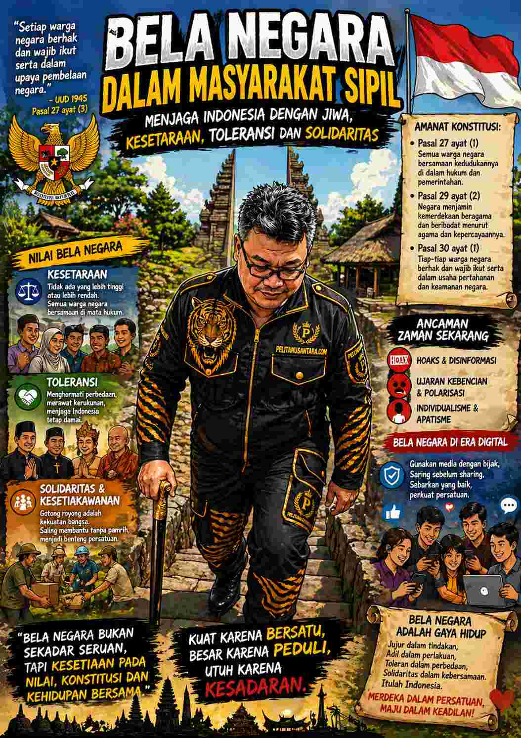 Spread the loveOleh: Kefas Hervin Devananda Jakarta – Bela negara hari ini terlalu sering hadir sebagai slogan yang nyaring, tetapi kosong di dalam. Ia digaungkan di podium, dipasang di baliho, dan diulang dalam seremoni. Namun di saat yang sama, kesetaraan dipertanyakan, toleransi diuji, dan solidaritas kian rapuh. Pertanyaannya sederhana: apakah kita sedang membela negara, atau hanya mengulang kata-kata tanpa makna? Dalam kerangka konstitusi, bela negara bukan sekadar ajakan moral, melainkan amanat yang tegas. Undang-Undang Dasar 1945, khususnya Pasal 27 ayat (3) menyatakan bahwa “setiap warga negara berhak dan wajib ikut serta dalam upaya pembelaan negara.” Lebih lanjut, Pasal 30 ayat (1) menegaskan bahwa “tiap-tiap warga negara berhak dan wajib ikut serta dalam usaha pertahanan dan keamanan negara.” Amanat ini diperkuat oleh Undang-Undang Nomor 3 Tahun 2002 tentang Pertahanan Negara, yang menempatkan masyarakat sipil sebagai bagian penting dalam sistem pertahanan semesta. Artinya, bela negara tidak hanya milik militer, tetapi menjadi tanggung jawab kolektif seluruh rakyat Indonesia. Namun, di sinilah ironi itu muncul: ketika dasar hukum begitu jelas, praktiknya justru sering kehilangan arah. Konstitusi Indonesia tidak hanya berbicara tentang bela negara, tetapi juga tentang keadilan. Pasal 27 ayat (1) UUD 1945 menegaskan bahwa “segala warga negara bersamaan kedudukannya di dalam hukum dan pemerintahan.” Namun realitas di lapangan menunjukkan bahwa kesetaraan masih sering menjadi wacana, bukan kenyataan. Diskriminasi sosial, ketimpangan ekonomi, hingga perlakuan berbeda terhadap kelompok tertentu menjadi tanda bahwa nilai konstitusi belum sepenuhnya hidup. Bela negara tidak bisa berdiri di atas ketidakadilan. Ketika kesetaraan diabaikan, maka rasa memiliki terhadap negara pun ikut melemah. Dan tanpa rasa memiliki, bela negara hanya menjadi slogan kosong. Indonesia adalah bangsa yang dibangun di atas keberagaman. Konstitusi menjamin kebebasan beragama melalui Pasal 29 ayat (2) UUD 1945, yang menyatakan bahwa “negara menjamin kemerdekaan tiap-tiap penduduk untuk memeluk agamanya masing-masing dan untuk beribadat menurut agamanya dan kepercayaannya itu.” Namun, jaminan konstitusional ini seringkali berbenturan dengan realitas sosial yang rapuh. Konflik berbasis perbedaan masih terjadi, bahkan dipicu oleh hal-hal yang seharusnya bisa diselesaikan dengan dialog. Toleransi tidak cukup diucapkan—ia harus diperjuangkan dalam tindakan. Bela negara dalam konteks ini adalah menjaga agar perbedaan tidak berubah menjadi perpecahan. Nilai solidaritas dan kesetiakawanan sosial sejatinya tercermin dalam tujuan negara sebagaimana tertuang dalam Pembukaan UUD 1945, yaitu melindungi segenap bangsa Indonesia dan seluruh tumpah darah Indonesia, serta memajukan kesejahteraan umum. Namun dalam kehidupan modern, semangat ini mulai tergerus oleh individualisme. Kepedulian sosial kerap bersifat sesaat, muncul hanya ketika menjadi sorotan publik. Padahal, bela negara dalam masyarakat sipil justru menemukan bentuk paling nyata dalam solidaritas. Ketika masyarakat saling membantu tanpa pamrih, di situlah negara sesungguhnya sedang dijaga. Di era digital, tantangan bela negara semakin kompleks. Kebebasan berekspresi dijamin, namun sering disalahgunakan. Hoaks, ujaran kebencian, dan polarisasi menjadi ancaman nyata bagi persatuan. Dalam konteks ini, bela negara berarti menggunakan kebebasan secara bertanggung jawab. Kebebasan tanpa kesadaran hanya akan melahirkan kekacauan, bukan kemerdekaan. Konstitusi telah memberikan arah yang jelas: kesetaraan, toleransi, dan solidaritas adalah fondasi kehidupan berbangsa. Namun nilai-nilai itu tidak akan hidup jika hanya berhenti pada teks. Bela negara harus diwujudkan dalam tindakan nyata: menegakkan keadilan tanpa diskriminasi menghormati perbedaan sebagai kekuatan membangun solidaritas sebagai identitas bangsa Bela negara bukan sekadar kewajiban hukum, tetapi panggilan moral untuk menjaga Indonesia tetap utuh. Pertanyaan mendasar bagi kita sebagai bangsa bukan lagi apakah kita memahami bela negara, tetapi apakah kita setia pada nilai-nilai yang terkandung di dalamnya. Konstitusi sudah jelas. Yang belum jelas adalah komitmen kita untuk menjalankannya. Indonesia tidak akan runtuh karena lemahnya aturan. Ia bisa runtuh ketika rakyatnya berhenti percaya pada nilai yang seharusnya mereka jaga. Maka, bela negara hari ini adalah tentang kesetiaan—bukan hanya pada negara, tetapi pada konstitusi, pada kemanusiaan, dan pada satu sama lain. Post Views: 4 Navigasi pos Bukan Sekedar Kecelakaan : Ini Kegagalan Sistem